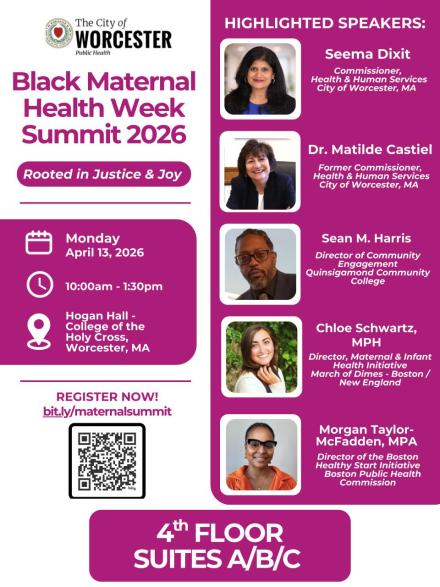 The Worcester Department of Public Health is pleased to share the agenda and featured speakers for our Black Maternal Health Week Summit. This event brings together leaders, practitioners, and advocates dedicated to advancing equitable healthcare access and outcomes for Black mothers.